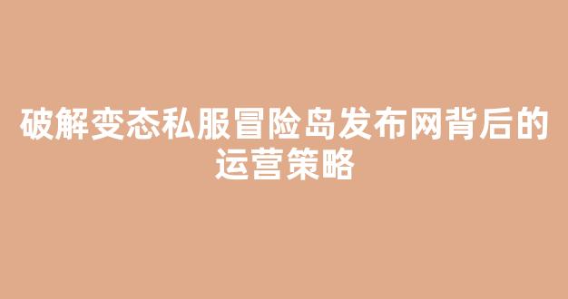 破解变态私服冒险岛发布网背后的运营策略